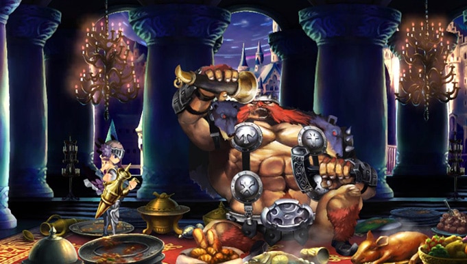 Le système de level-up est basé sur la nourriture (élément incontournable des jeux Vanillaware), que l’on peut choisir de cuisiner à l’aide d’un chef (à condition d’avoir « loot » les recettes adéquates au fil des niveaux), ou acheter déjà préparée au village Pooka. Chaque plat dégusté apporte un certain montant de points d’expérience, et améliore le nombre maximum de HP. Il est donc indispensable de prendre le temps d’aller manger un morceau régulièrement !