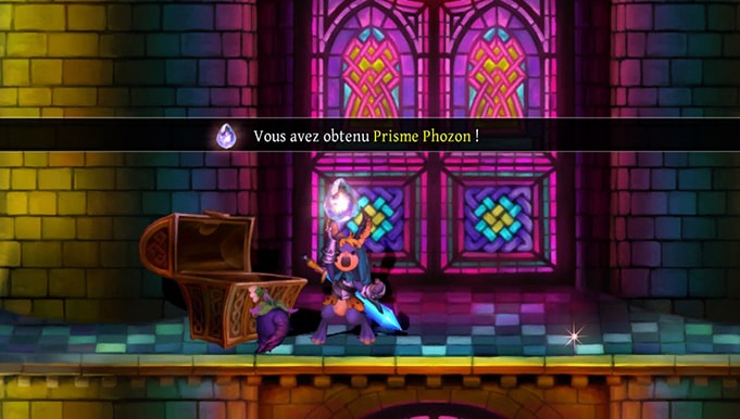 La progression dans le jeu se fait donc au fil des pages des Grimoires, et alterne entre chapitres purement narratifs, et exploration de niveaux jusqu’au Boss. Certains environnements sont particulièrement vastes et remplis de trésors cachés et salles secrètes à découvrir pour récolter ingrédients d’alchimie (pour se concocter quelques potions de soin ou d’attaques), pièces d’or et autres babioles magiques à équiper !