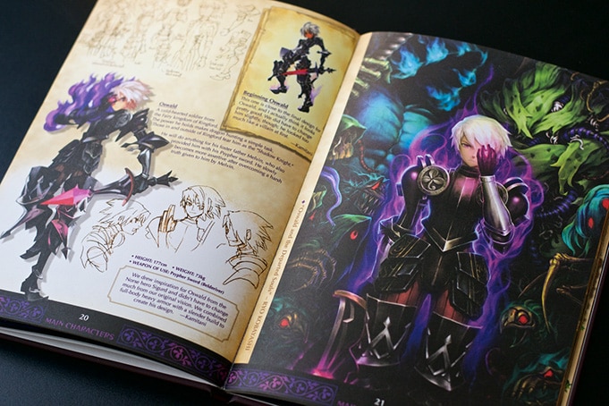Les visuels et artwork qu’il contient sont vraiment magnifiques. Chaque protagoniste est présenté sur plusieurs pages dédiées, avec croquis et note. L’univers graphique et le chara design d’Odin Sphere sont absolument fantastiques… j’ai feuilleté ce bouquin avec grand plaisir !
