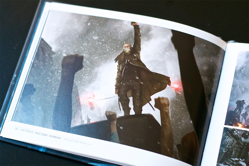 Sur un des côtés, un compartiment contient un livret de présentation de Detroit Become Human orné d’un oeil d’Android.