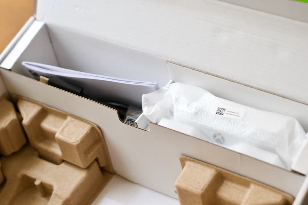 La présentation est hyper soignée. La Xbox Series S est superbement mise en avant et protégée avec des éléments cartons siglés Xbox. La console est emmitouflée dans une protection, avec un ruban vert « Power Your Dreams« , le fameux slogan Next-Gen de la marque. Je trouve cela hyper classe ! J’adore ce genre de détail, vraiment.