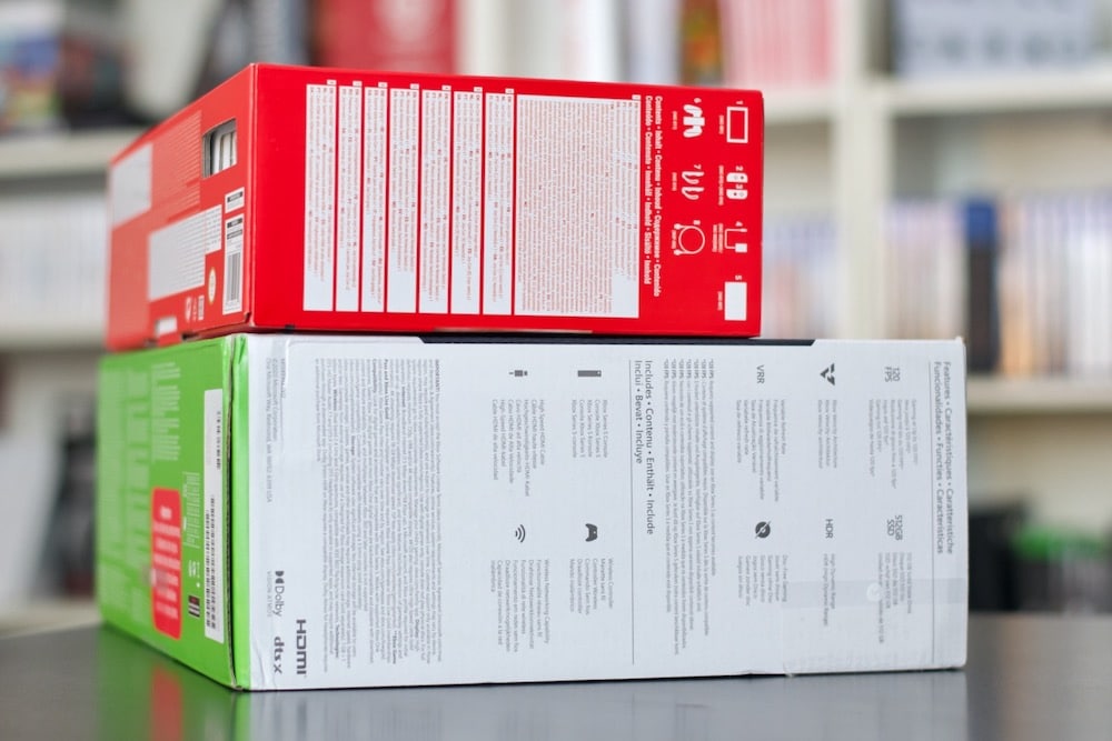 La première chose qui m’a frappé, c’est la taille de la boite XSS : elle est minuscule, et très légère ! A titre de comparaison, j’ai ressorti ma boite de Nintendo Switch pour que vous vous rendiez compte. Oui elle est plus grosse, mais pas énormément.