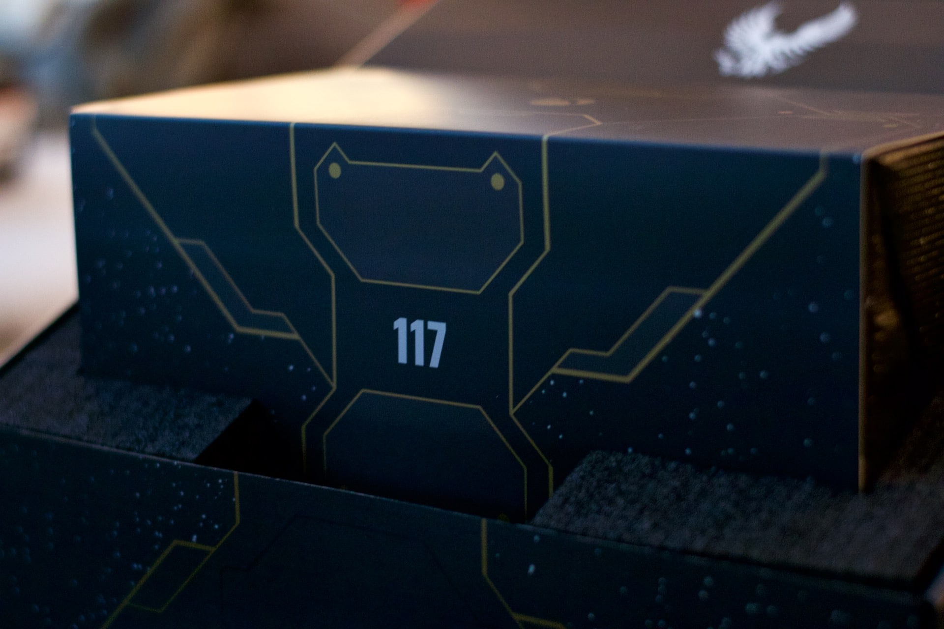 Au niveau de la tranche supérieure de la manette Elite v2, on trouve une plaque métallique « 117 » du Spartan John bien entendu ;)